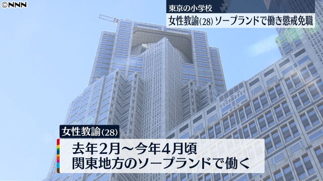 女性教諭は、ソープランドで働いていた理由について、「実家を離れて、都内に転居する資金を得るためだった」などと話しているということです。