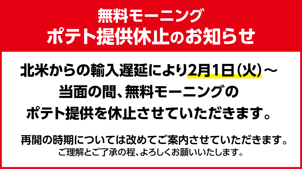 ポテト食べ放題は中止してるねんが
