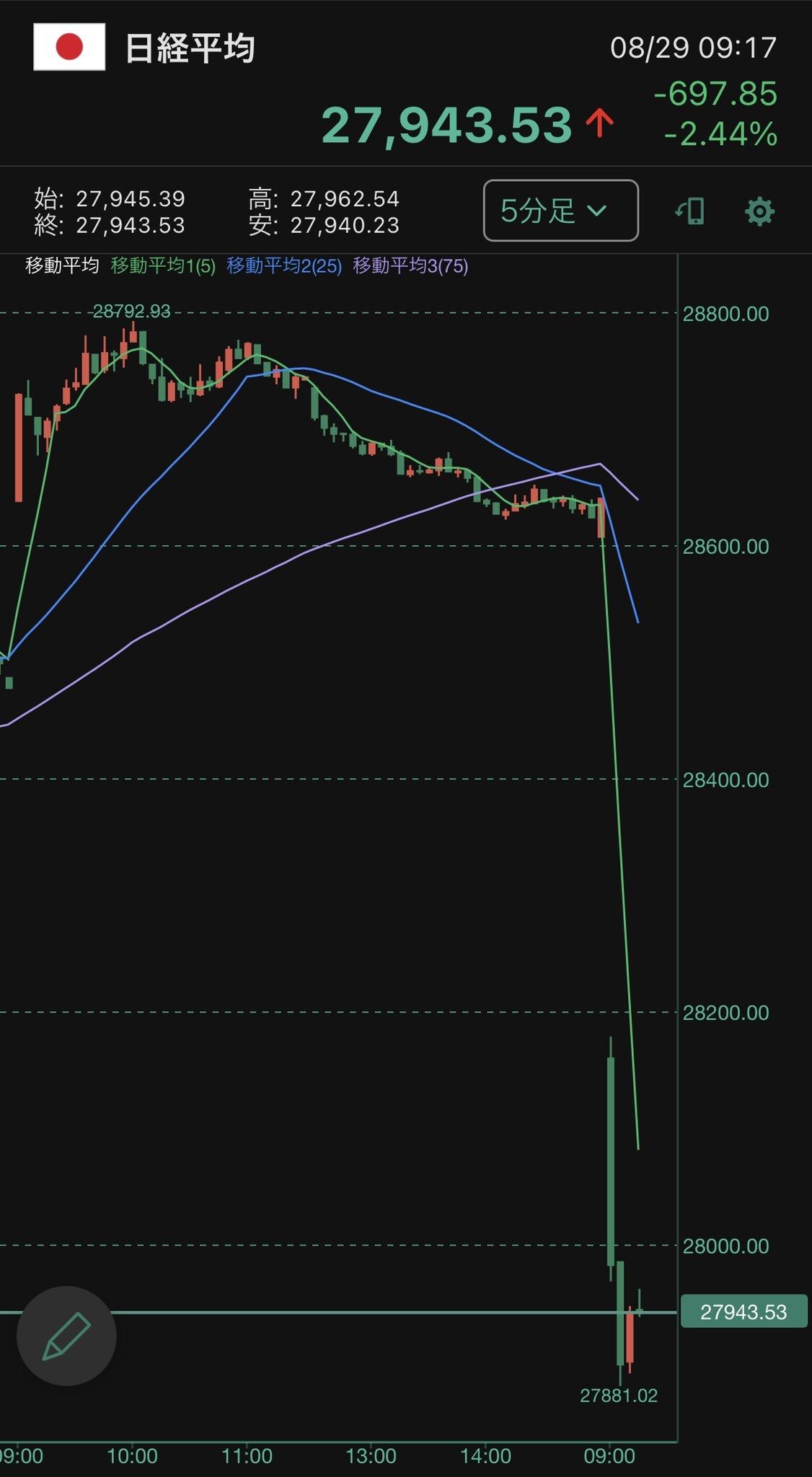 日経平均-700スタートで草はえる