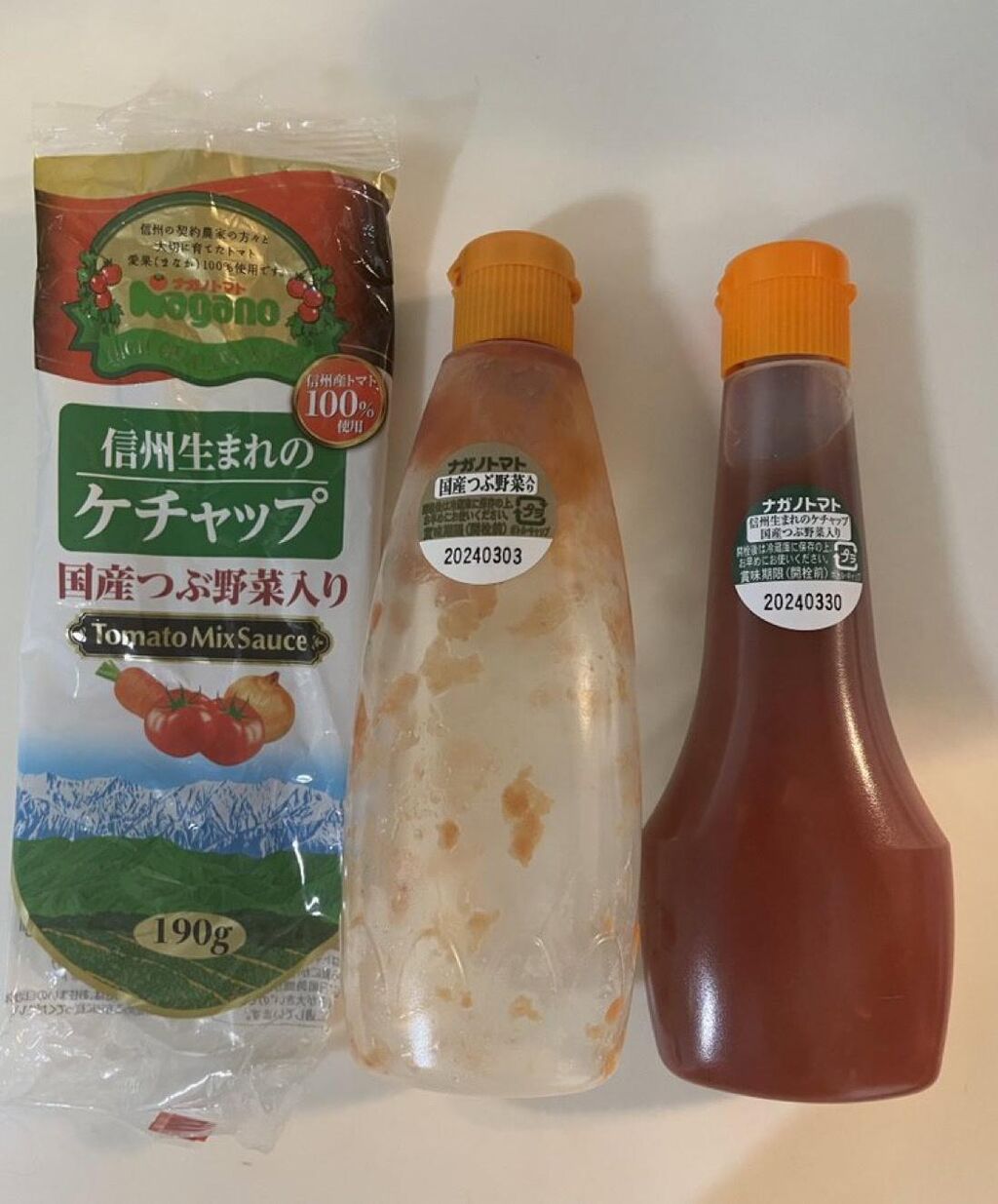 いつも使ってるケチャップの姿が変わり果てていて、なにこれ!?間違えた!?ってなった。値上げしないで容量を減らすにしてもこれはないよー😂