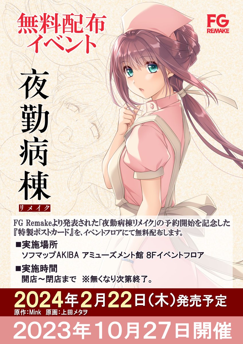 FGREMAKE様から発売される「夜勤病棟リメイク」の原画を担当させていただきました!