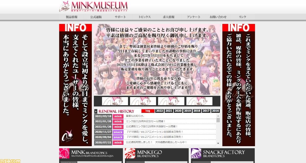 elf(エルフ)の阿比留壽浩氏などが独立し、1993年に設立した美少女ゲームメーカー“ミンク(Mink)”が、2022年3月31日をもってすべての事業を終了した。