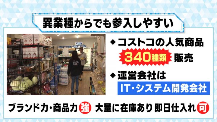 異業種からの参入ですが、参入は簡単だったといいます。コストバリューマーケットでは「コストコはブランド力・商品力が強い」「大量の在庫があるので即日仕入れができる」ということで、新規参入しやすいということです。