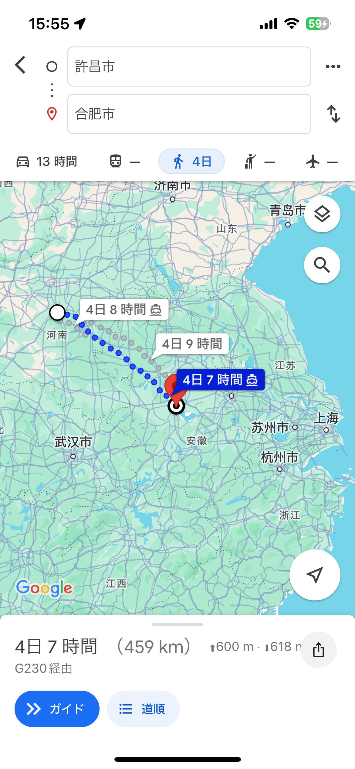 グーグルで上海から揚子江をさかのぼると面白いよ