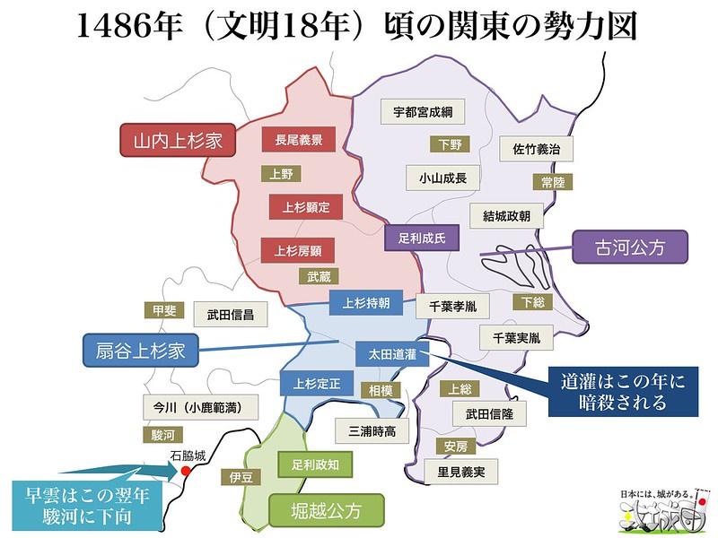 道灌が凄いのは享徳の乱後半の戦の大半は道灌が勝つか道灌が事後に介入して収拾付けてる、戦歴を見ると化け物の類