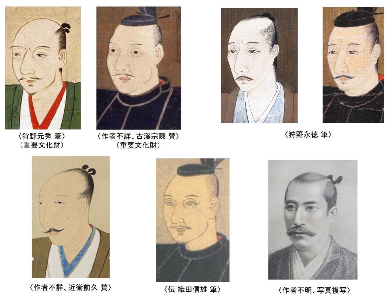 恐らく一番似てるのは狩野永徳が描いた肖像(この2枚だけやたらとその後の模写が多い)