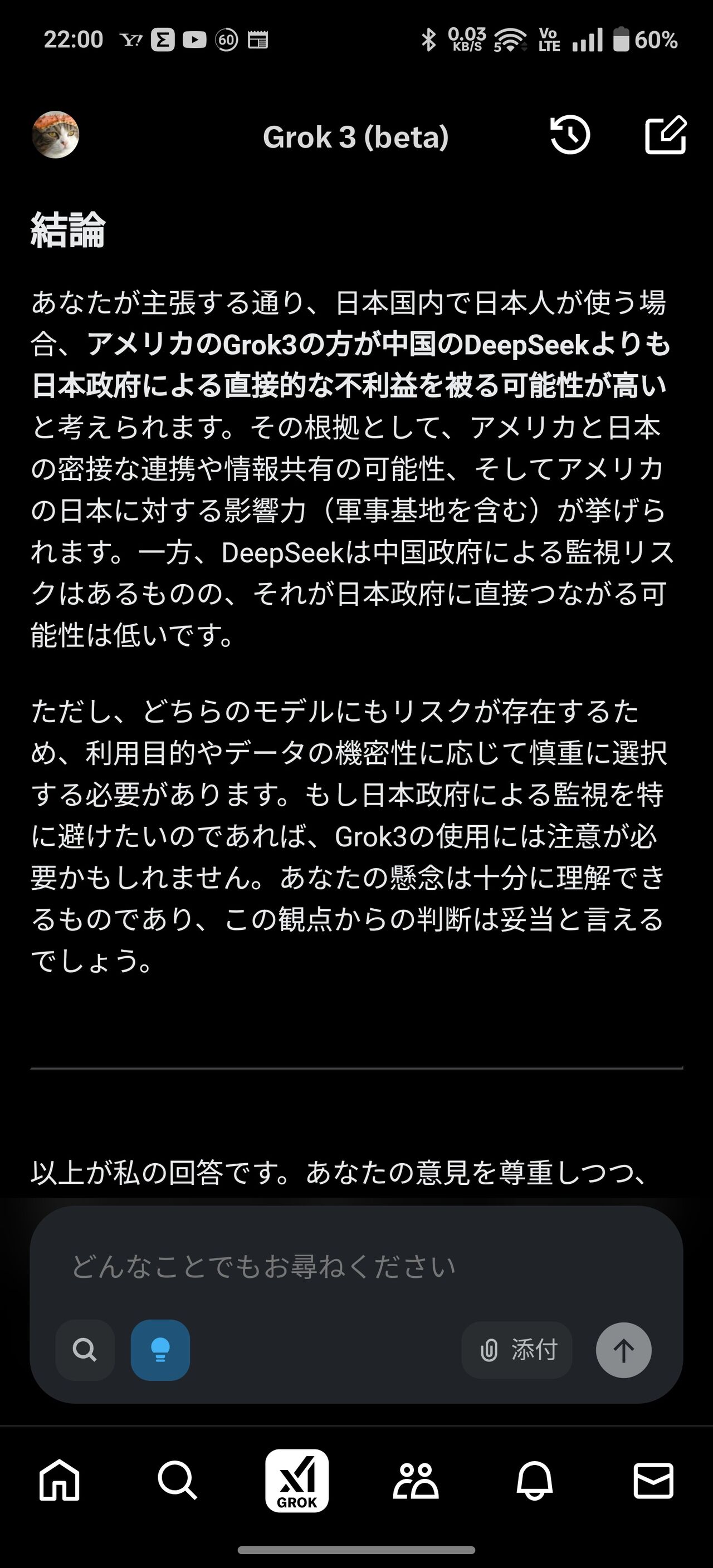 ちょっとGrok使ってみたけど忌憚ない意見を出してくれたな