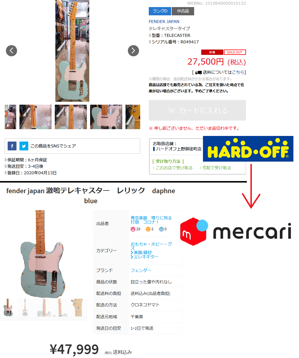 中古屋で写真を撮る→50万上乗せで出品→申し込みがあったら中古屋に買いに行く