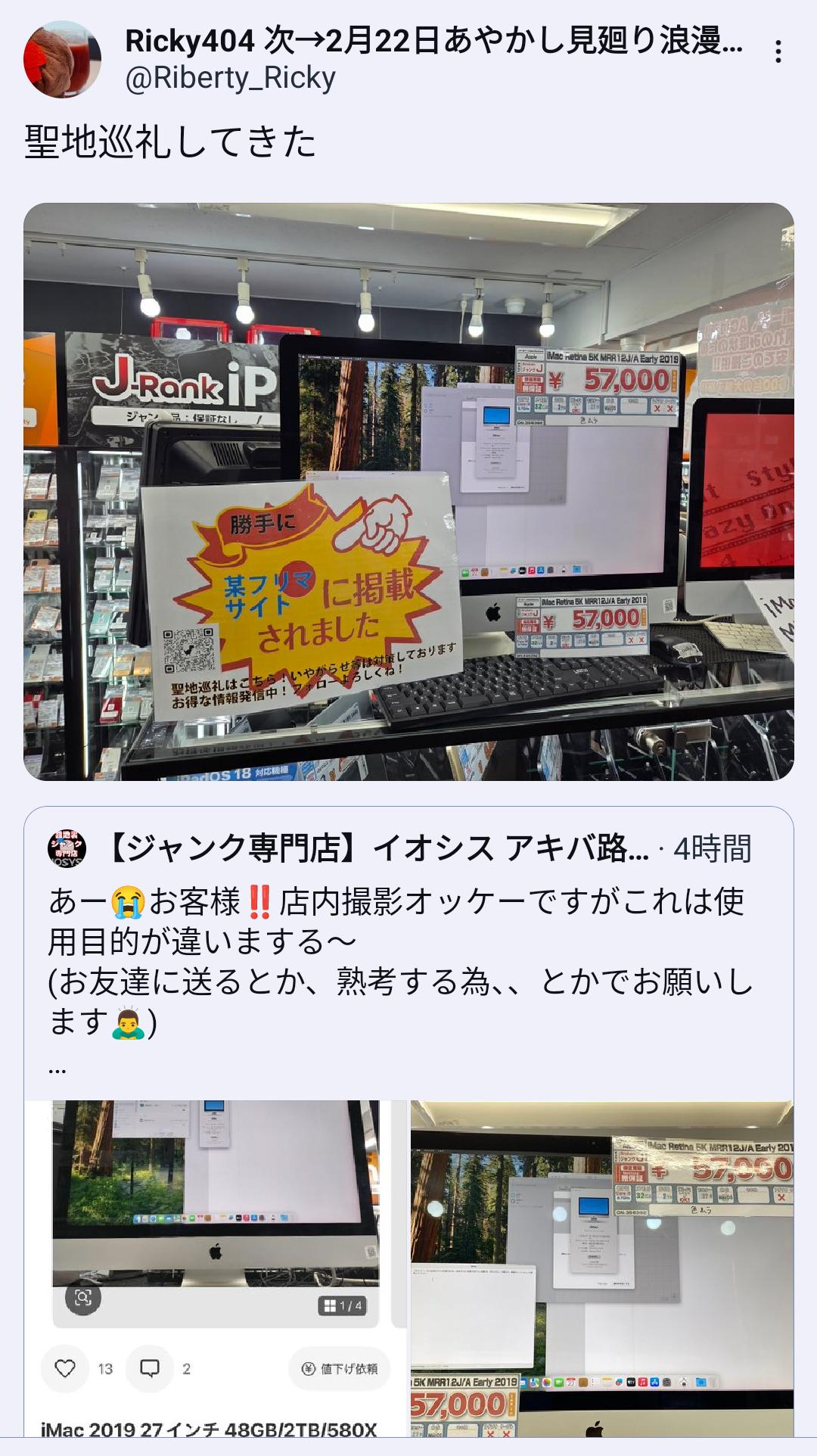 小売って基本的に撮影NGだと思うけどネット上だとだいたい無視されてるよね
