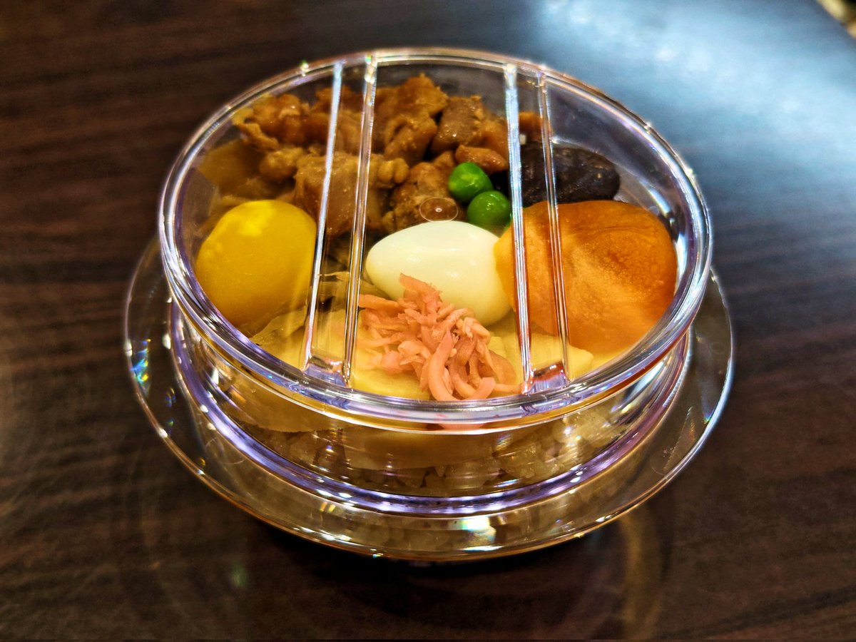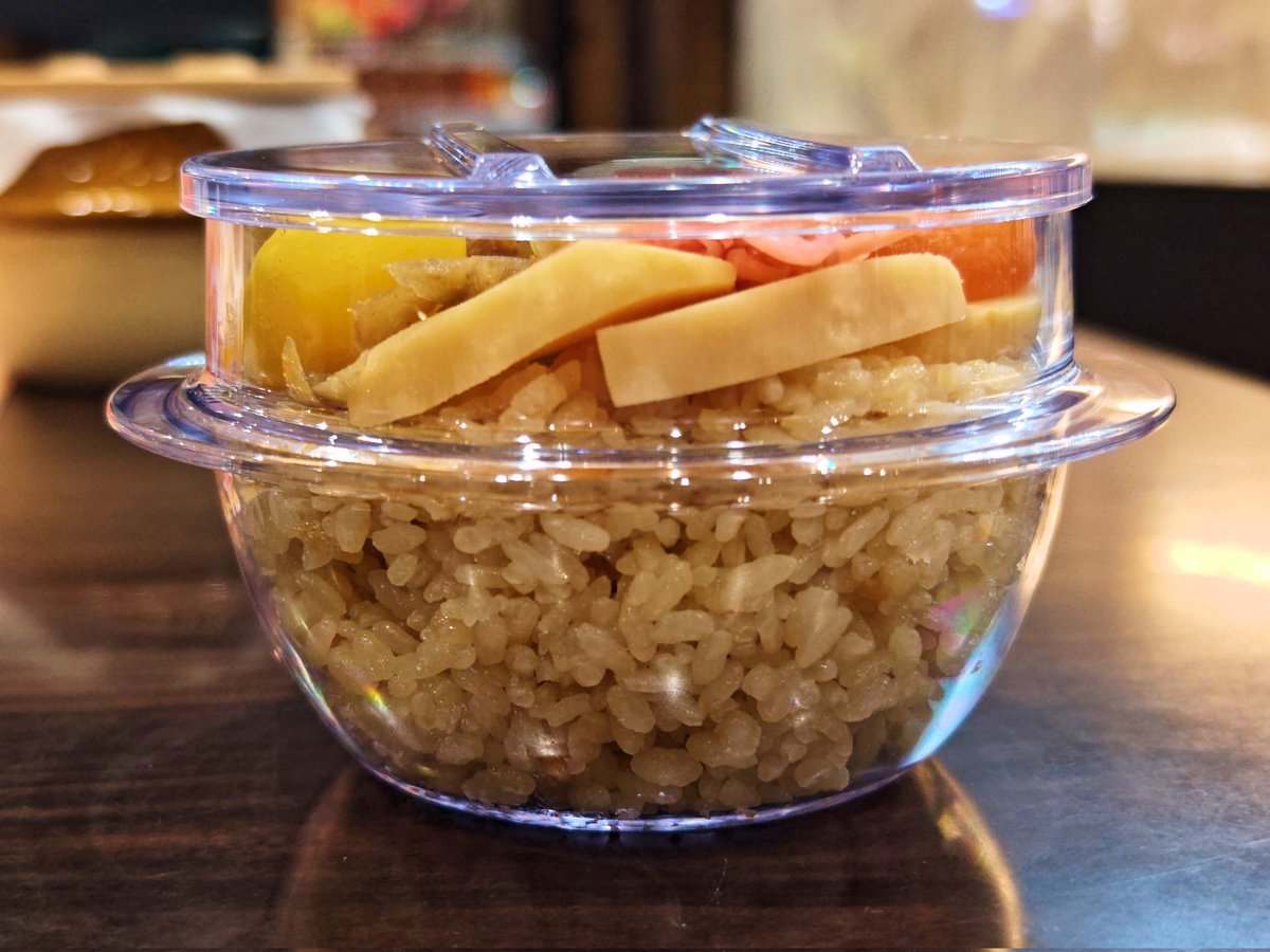 荻野屋、峠の釜めし、クリア釜をお弁当箱に再利用しました。