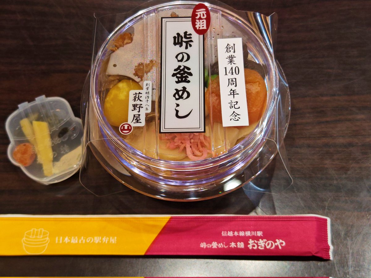 おぎのやは通常の釜めしより店舗限定のしゃけ親子釜めしの方が旨いし釜も青でかっこいいぞ