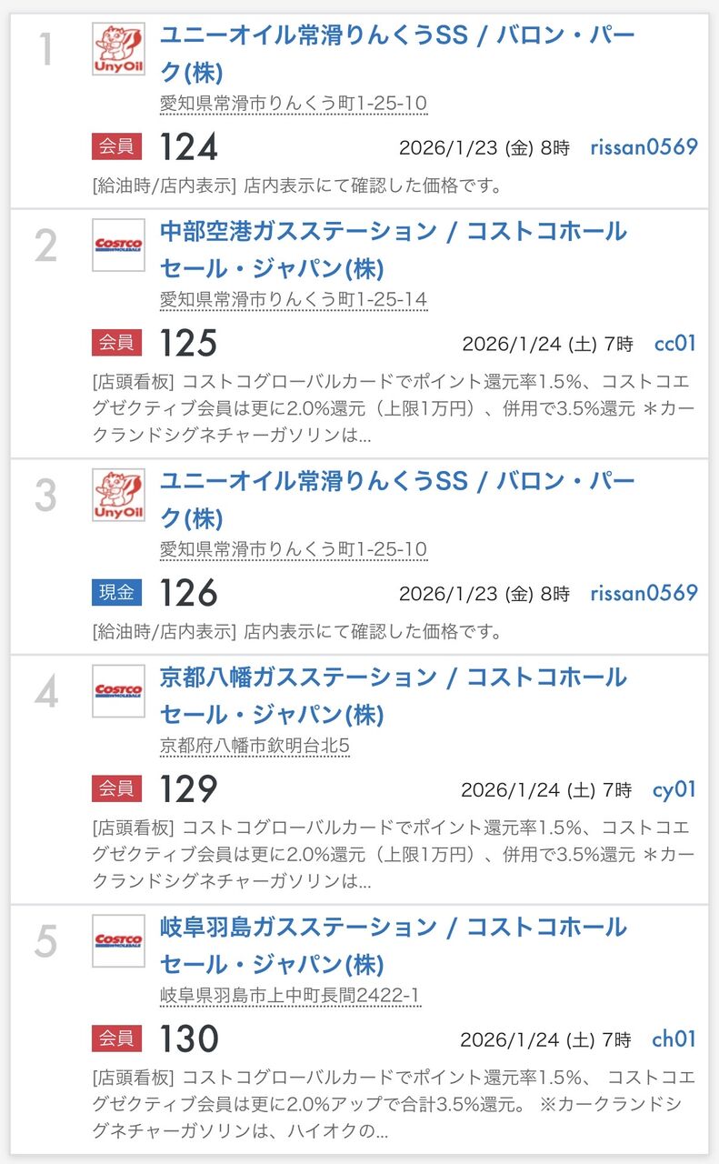 うちの通える範囲だと、129円と132円の店がある。同じコストコなのに