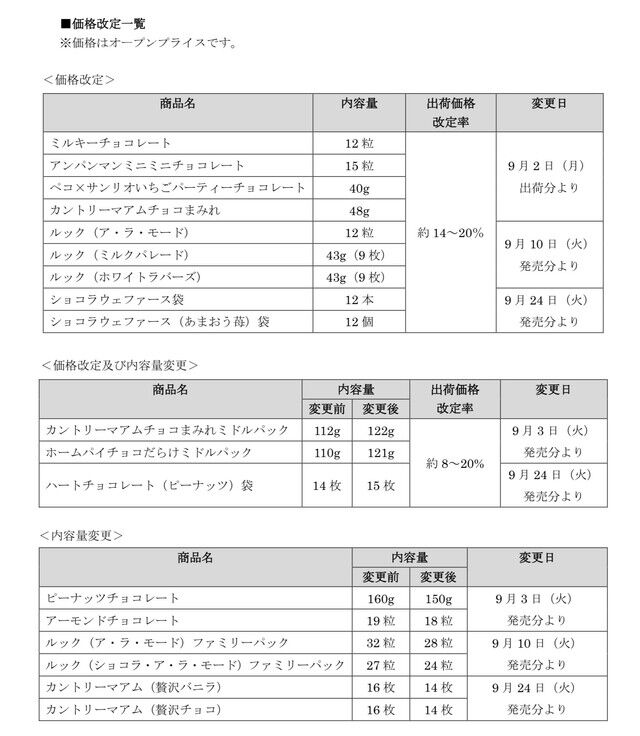カントリーマアムなど、9月から内容量さらにカット 不二家が一部商品の値上げと内容量変更を発表「企業努力で対応できる範囲を超える状況」