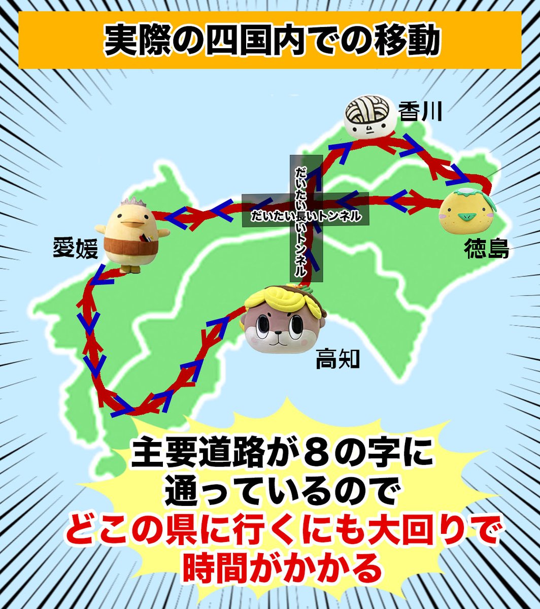 おなじ四国なんだから近いし隣の県にすぐ行けるよね?って言われたときにこれ見せるといいよー☆