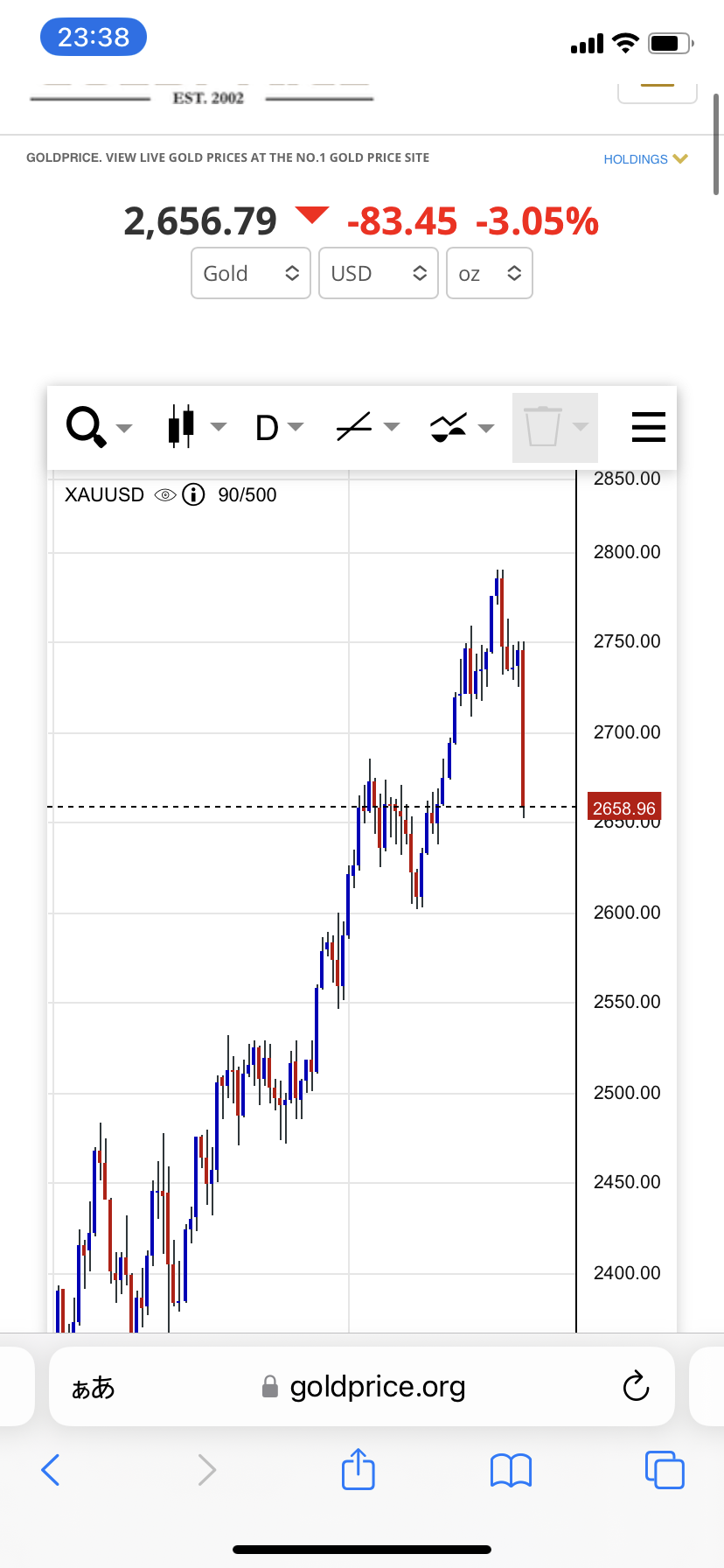 貴金属大手の田中貴金属工業(東京)は6日午後、金1グラム当たりの店頭小売価格(税込み)を