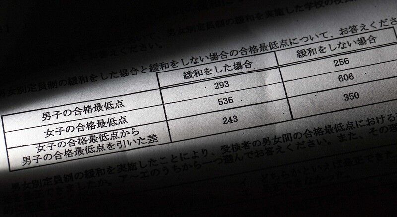 1000点満点で最大243点上回るケースや、男子の合格最低点を上回った女子20人が不合格とされた事例もあった。