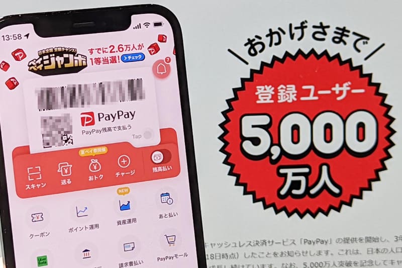 PayPayは18日、登録ユーザーが5,000万人を突破したと発表した。2018年10月のサービス開始から3年10カ月での達成で、日本の人口の約2.5人に1人がPayPayを利用。「決済を担う社会インフラとして成長し続けている」(PayPay)としている。